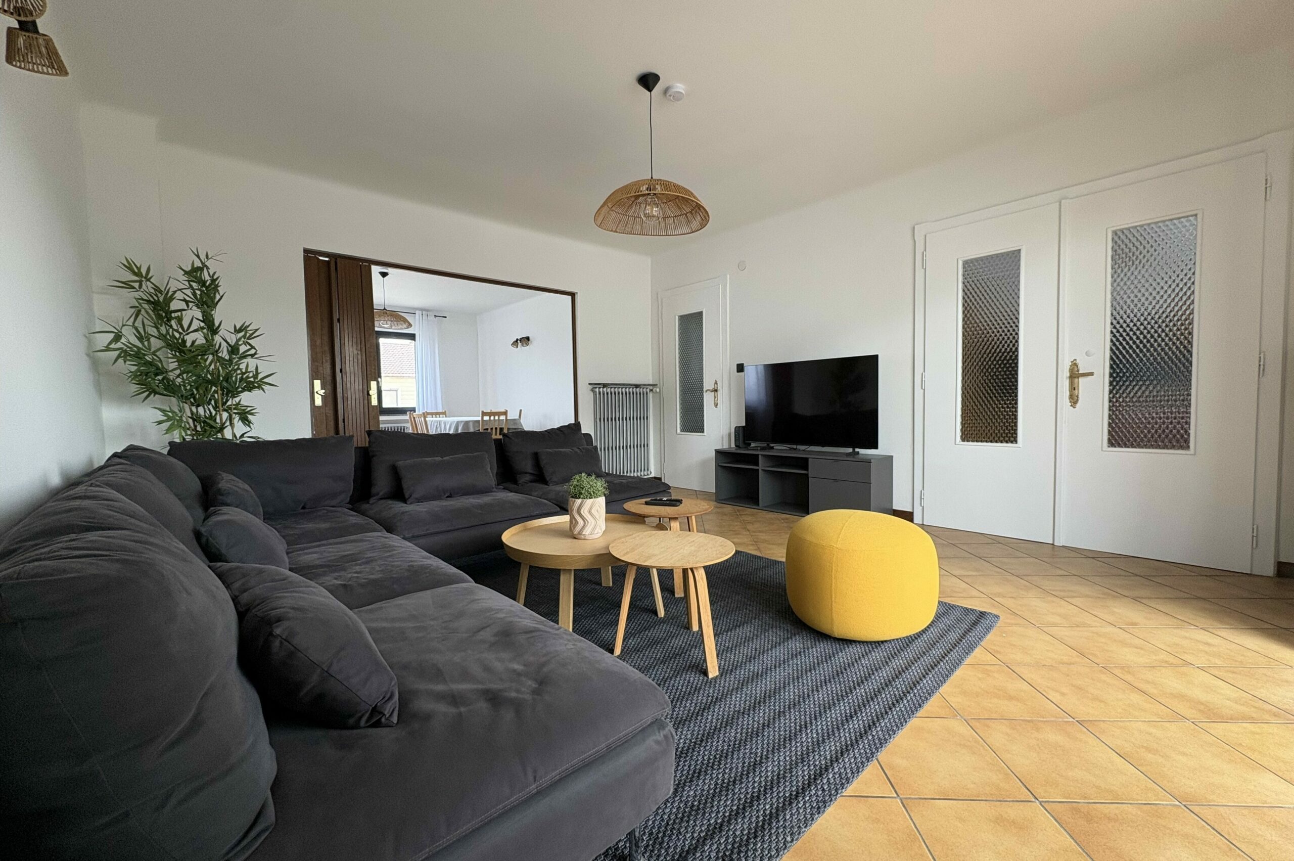 Spacieuse et parfaitement agencée, elle propose 4 chambres indépendantes, un vaste salon-séjour lumineux, une cuisine entièrement équipée, une buanderie dédiée, ainsi qu’une entrée généreuse facilitant l’accueil des groupes.